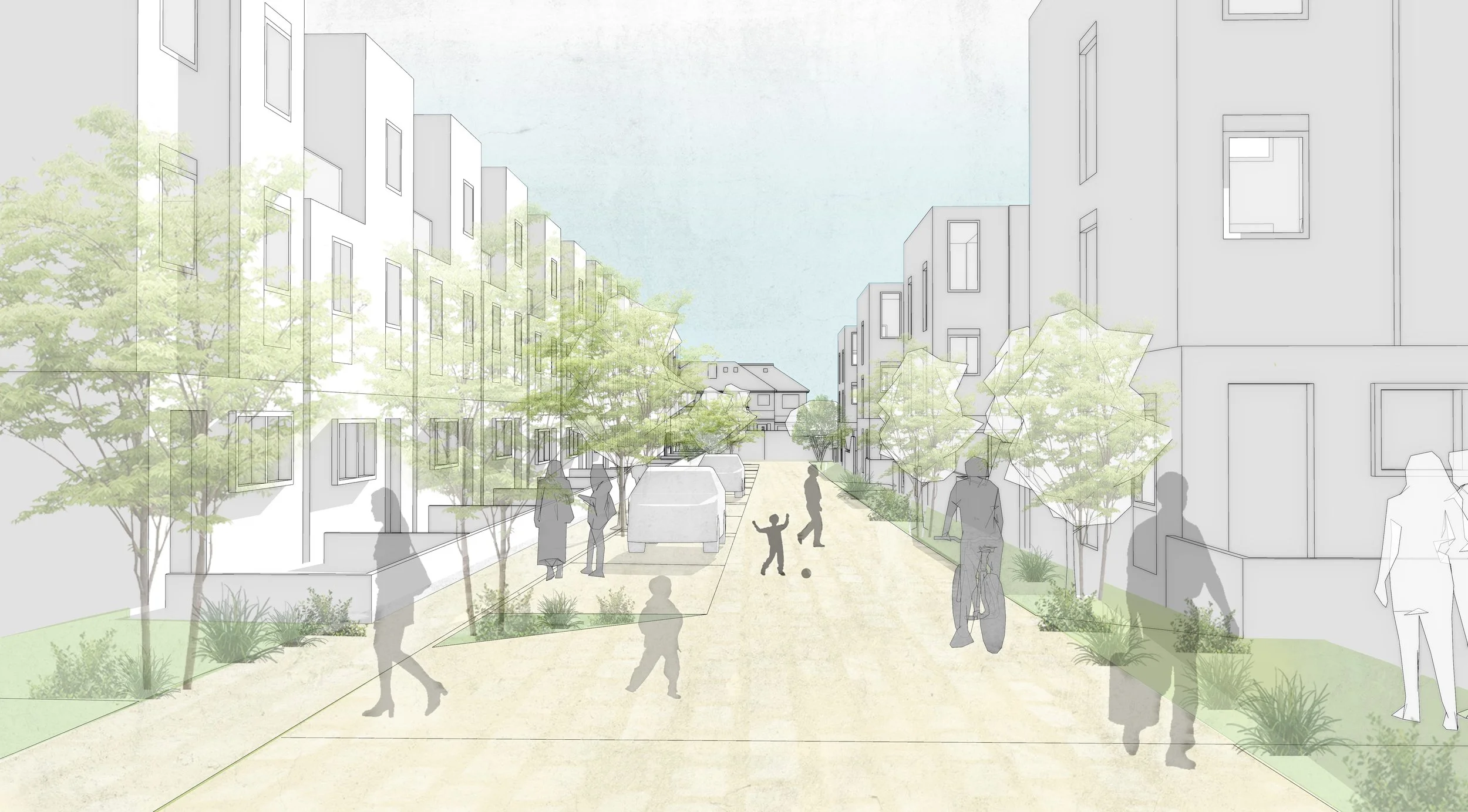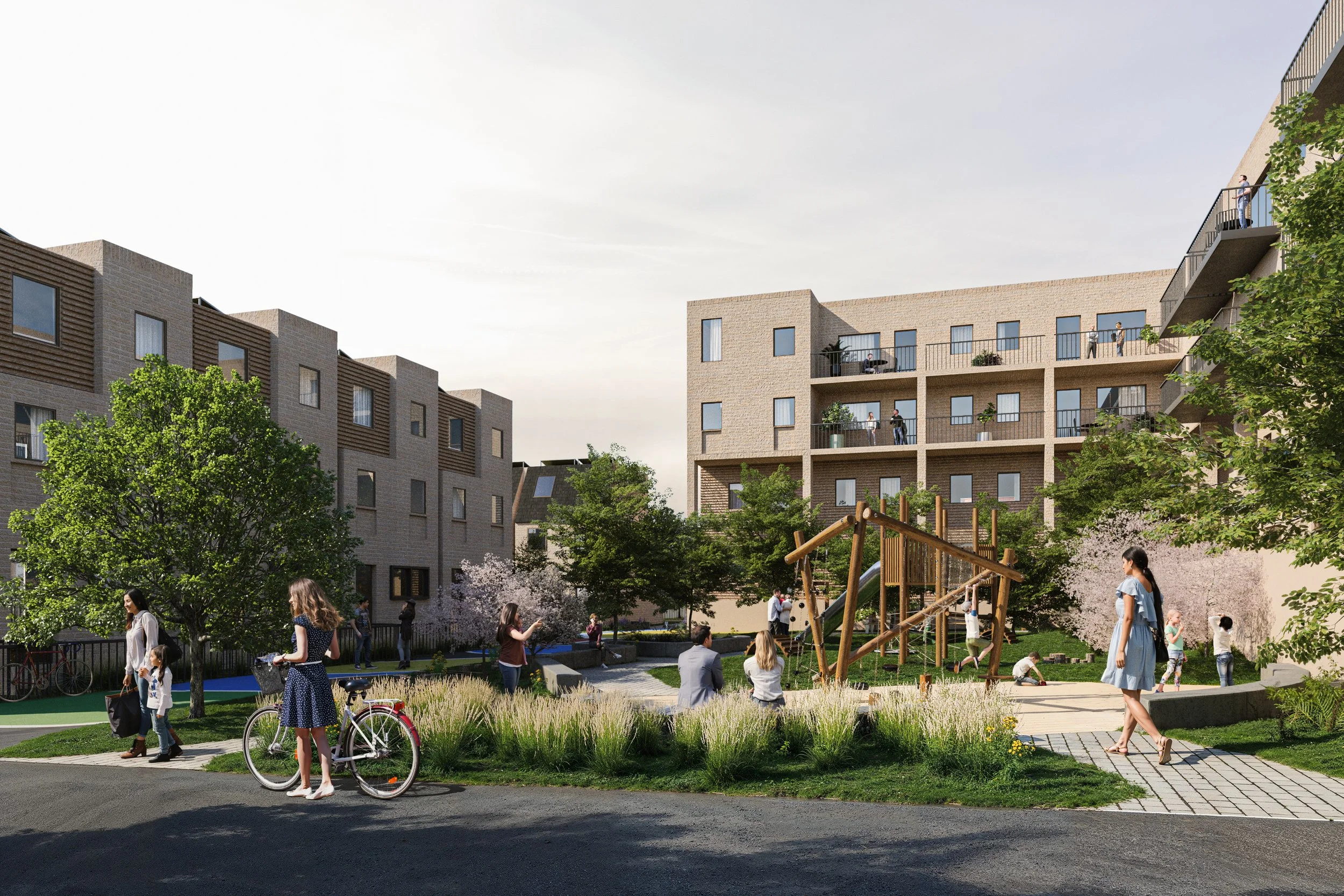 The whole scheme is tied together with pockets of green spaces which include a community playground, sensory gardens and residents’ gardens.